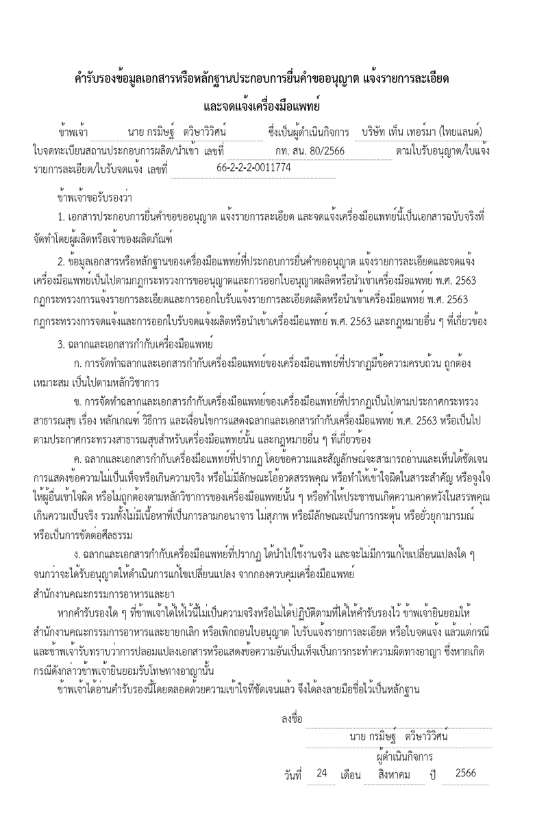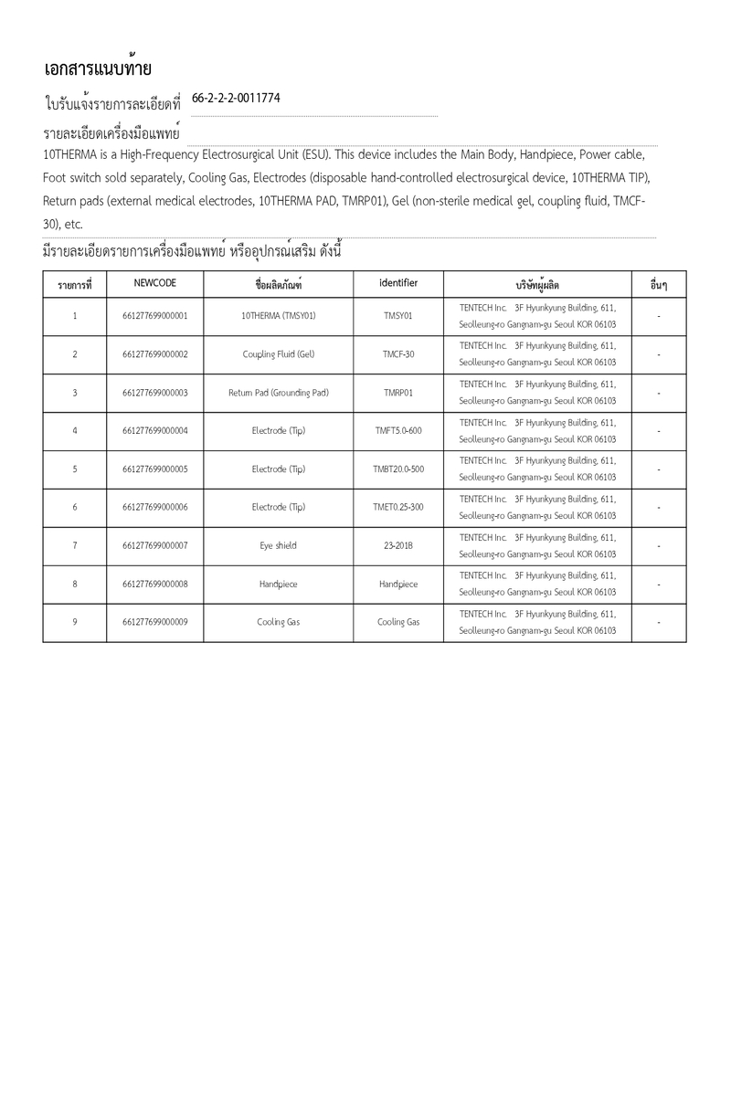 | 标题 | 10THERMA Thai FDA Certificate ( No. 66-2-2-2-0011774) | ||
