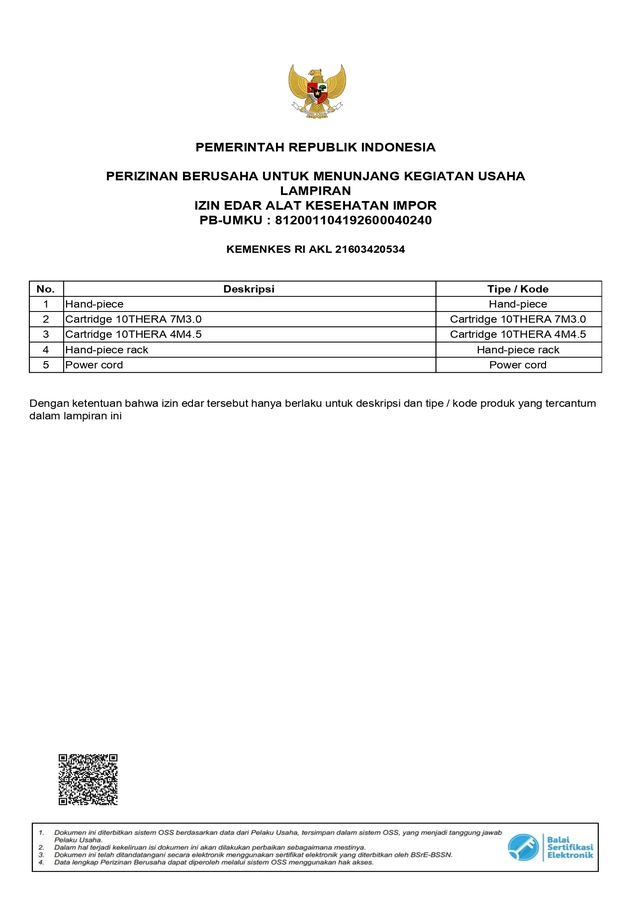 | 标题 | 10THERA Indonesia(MoH) Certificate ( No. 21603420534) | ||