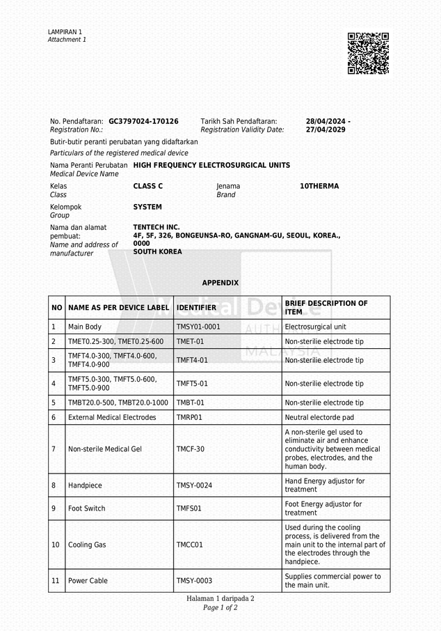 | 标题 | 10THERMA Malaysia MDA Certificate(No. GC3797024-170126) | ||