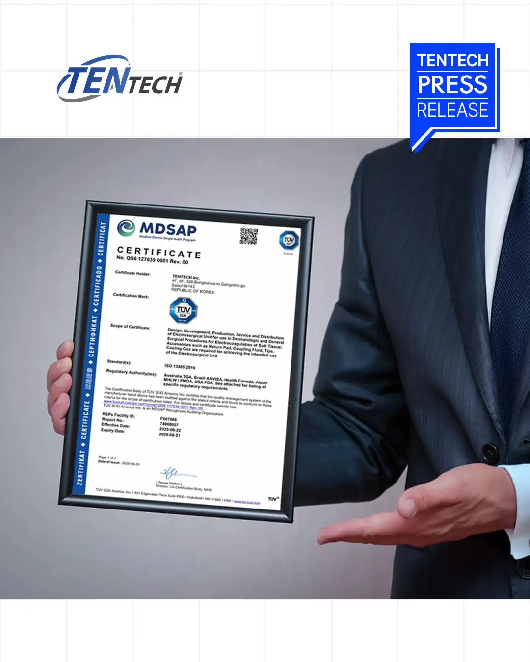 全球美学医疗器械公司腾特科技(首席执行官韩东玉)最近获得了医疗器械单一审核计划的认证,这将加快其全球市场的扩张。 医疗器械监管论坛的五个参与国——美国、巴西、日本、加拿大和澳大利亚——统一医疗器械质量管理审计的系统。 获得认证使制造商能够部分或完全免除每个国家的全球供应链审计。 这一成就使腾讯科技能够简化与各国的审计程序,减少时间和成本,从而提升其在全球市场的竞争力。 腾特科技通过其一线设备"10泰尔玛"和"10泰尔玛"在国内和国际上提升了其品牌知名度。特别是,"10泰尔玛"因提供高能量以最大化治疗效果并减少疼痛和副作用而收到了医疗专业人士和患者的积极反馈。 下一代高强度聚焦超声设备"十重"配备了三线同时照射系统,以最大化处理后的效果。 它配备了七种不同类型的墨盒,能够快速处理大面积区域并精确处理敏感区域。 三线和笔式墨盒在不损伤皮肤表面的情况下,为皮下层和微细小肌肉群提供能量,促进胶原蛋白和弹性纤维的再生,从而产生显著的提拉效果。 腾讯科技首席执行官韩东玉表示:"这一导弹防御系统认证证明了腾讯科技建立了世界一流的质量管理体系,并具备生产卓越产品的能力。" 我们将继续努力进入新市场,增强全球信誉,提升竞争力。 同时,腾特科技的目标是在今年年底前在国内销售300台,并在明年在全球销售1,000台。 该公司目前正在亚洲、欧洲和中东追求监管批准,并已与台湾、香港、印度尼西亚和越南等主要国家签订了分销协议。 |